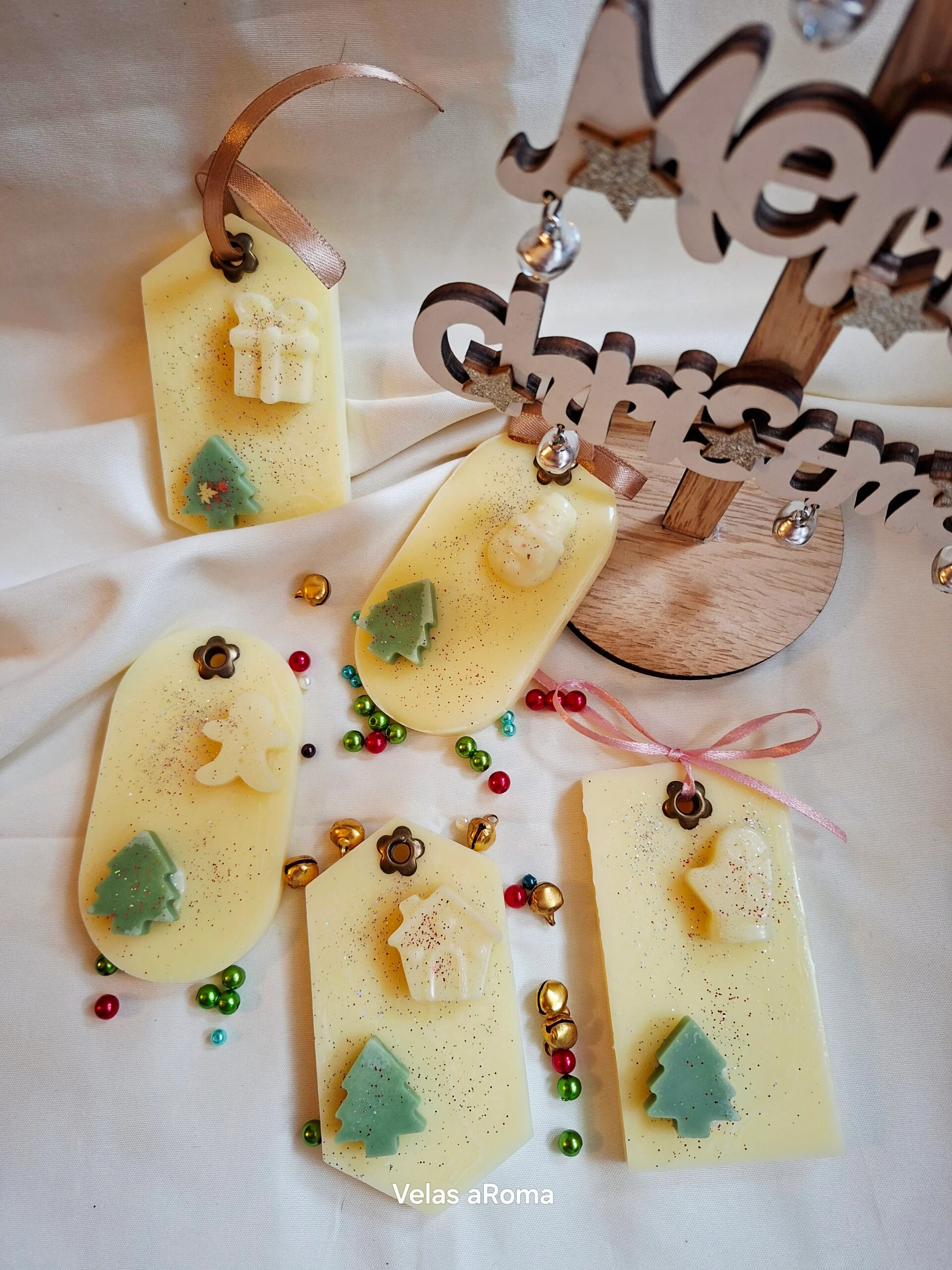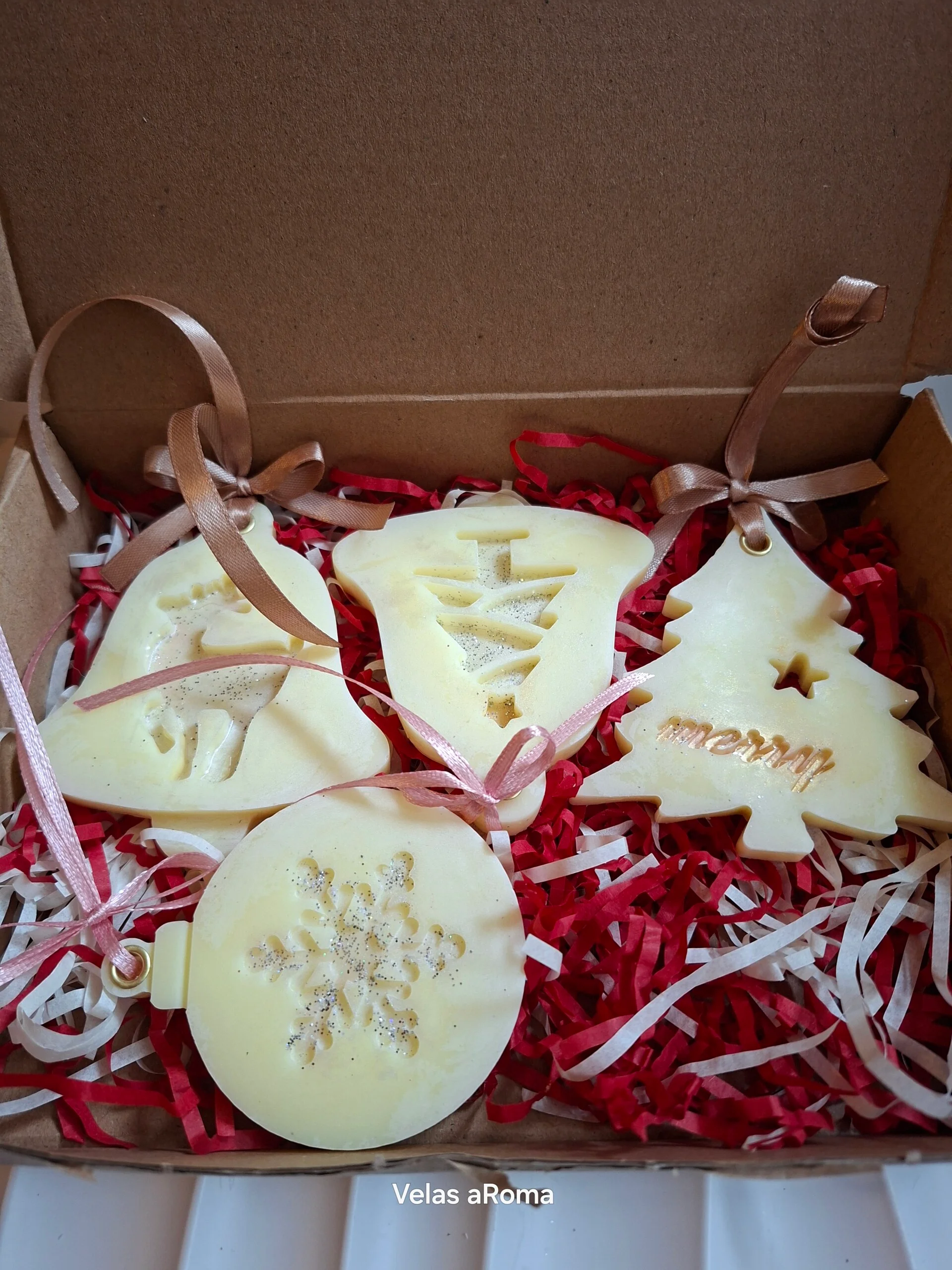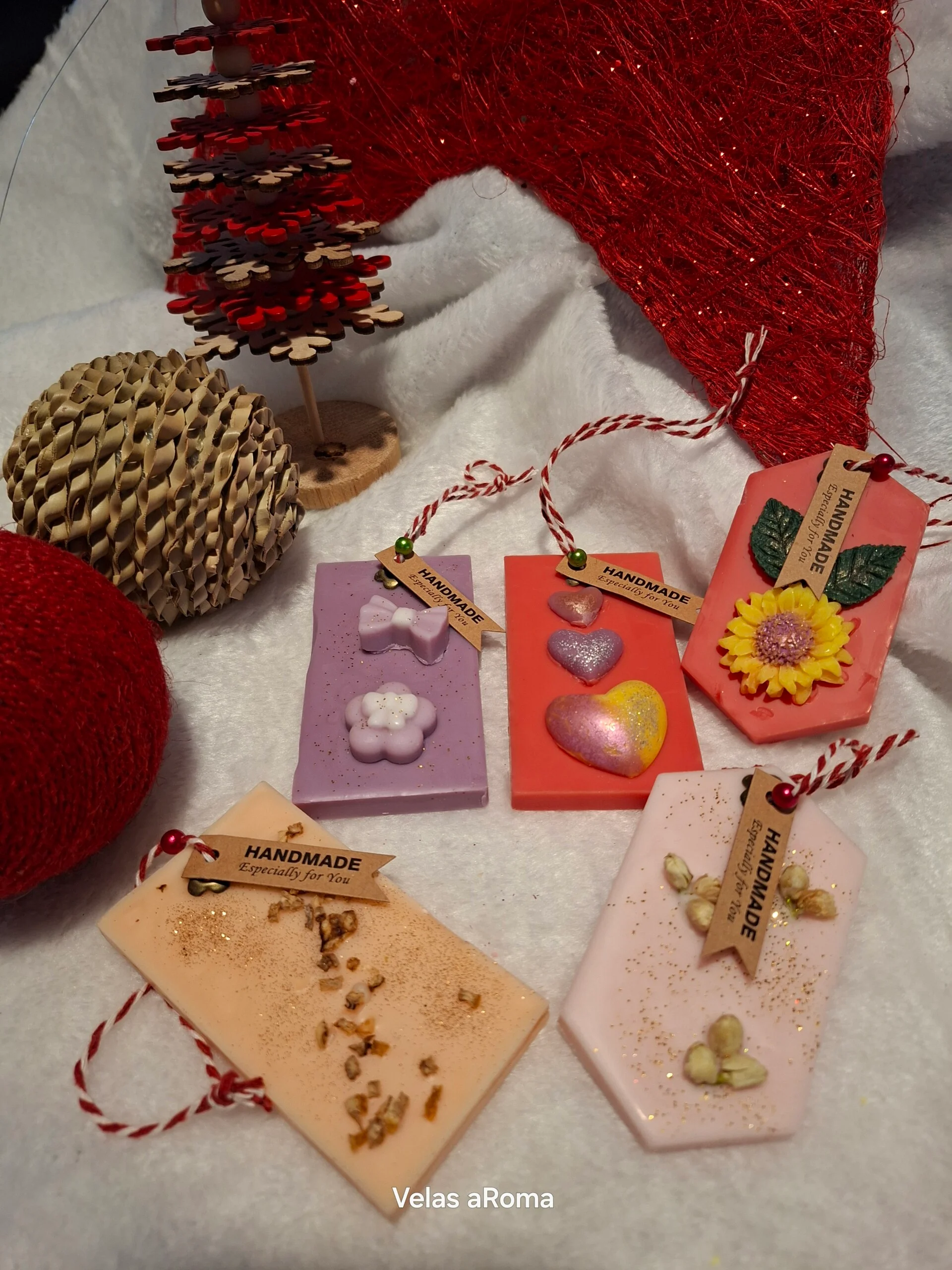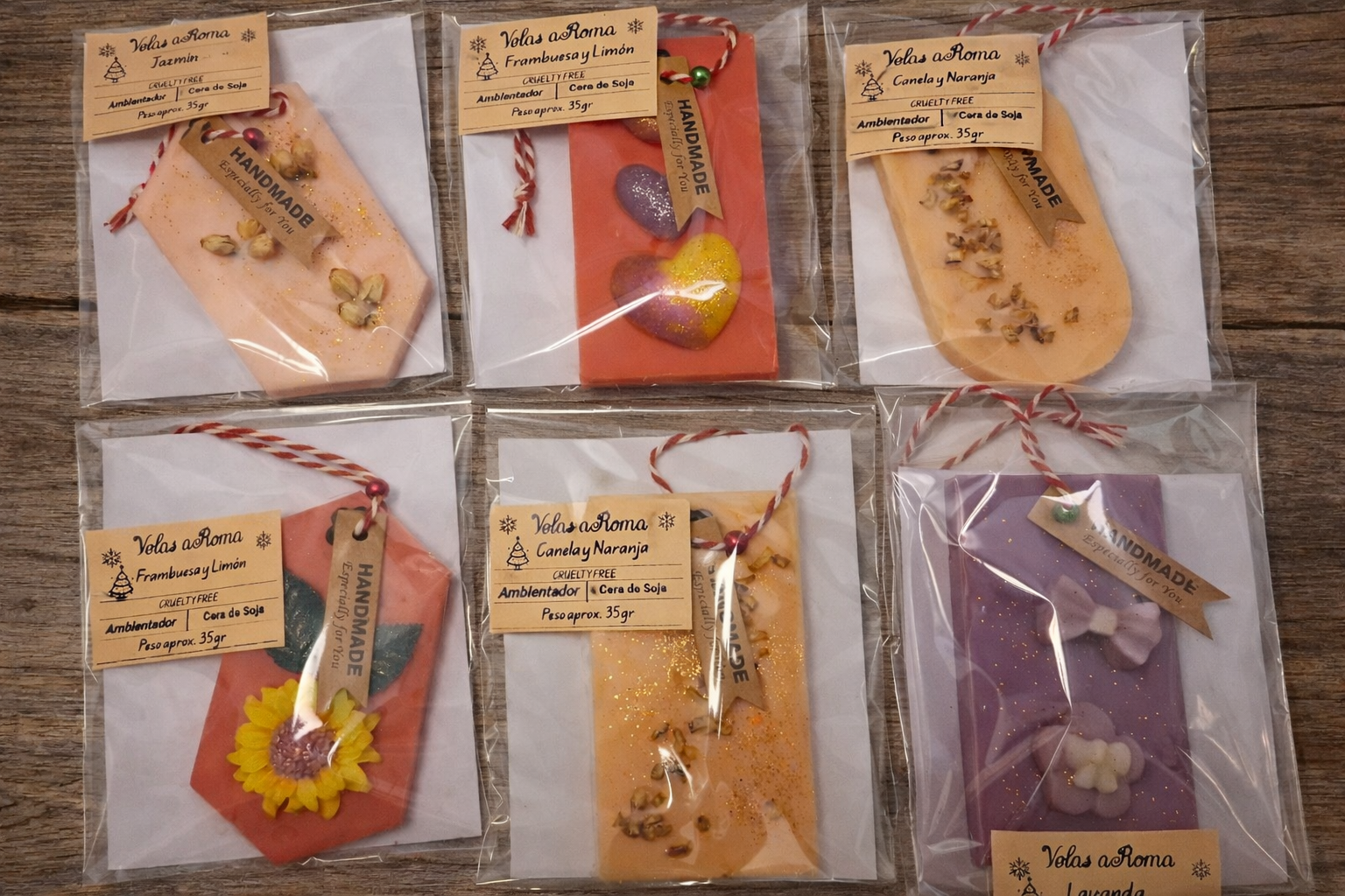 Estos ambientadores sólidos de cera vegetal están elaborados a mano con esencias de alta calidad y detalles decorativos navideños. Son ideales para perfumar armarios, cajones o espacios pequeños, además de ser un bonito detalle decorativo o regalo original