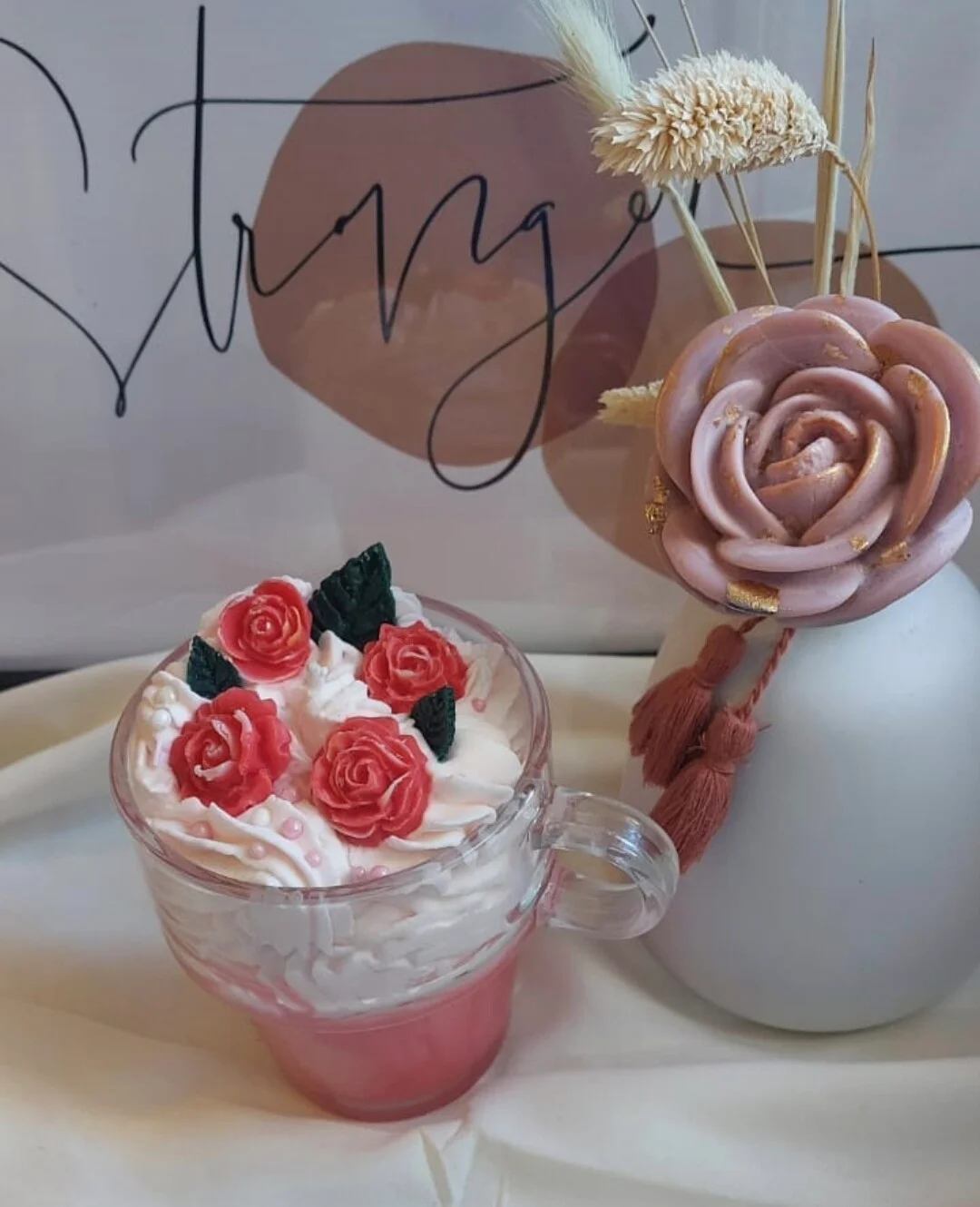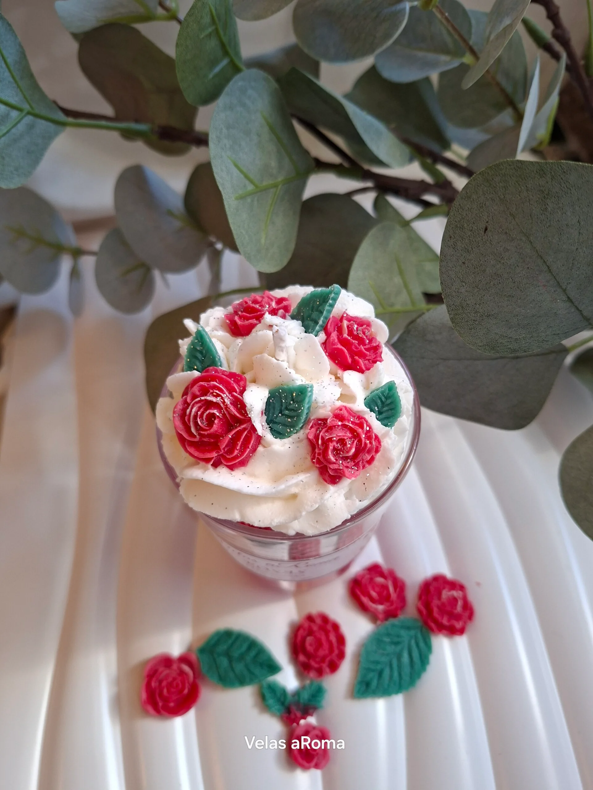 Decorada a mano con rosas de cera y acabado tipo chantilly, combina elegancia y dulzura en cada detalle.