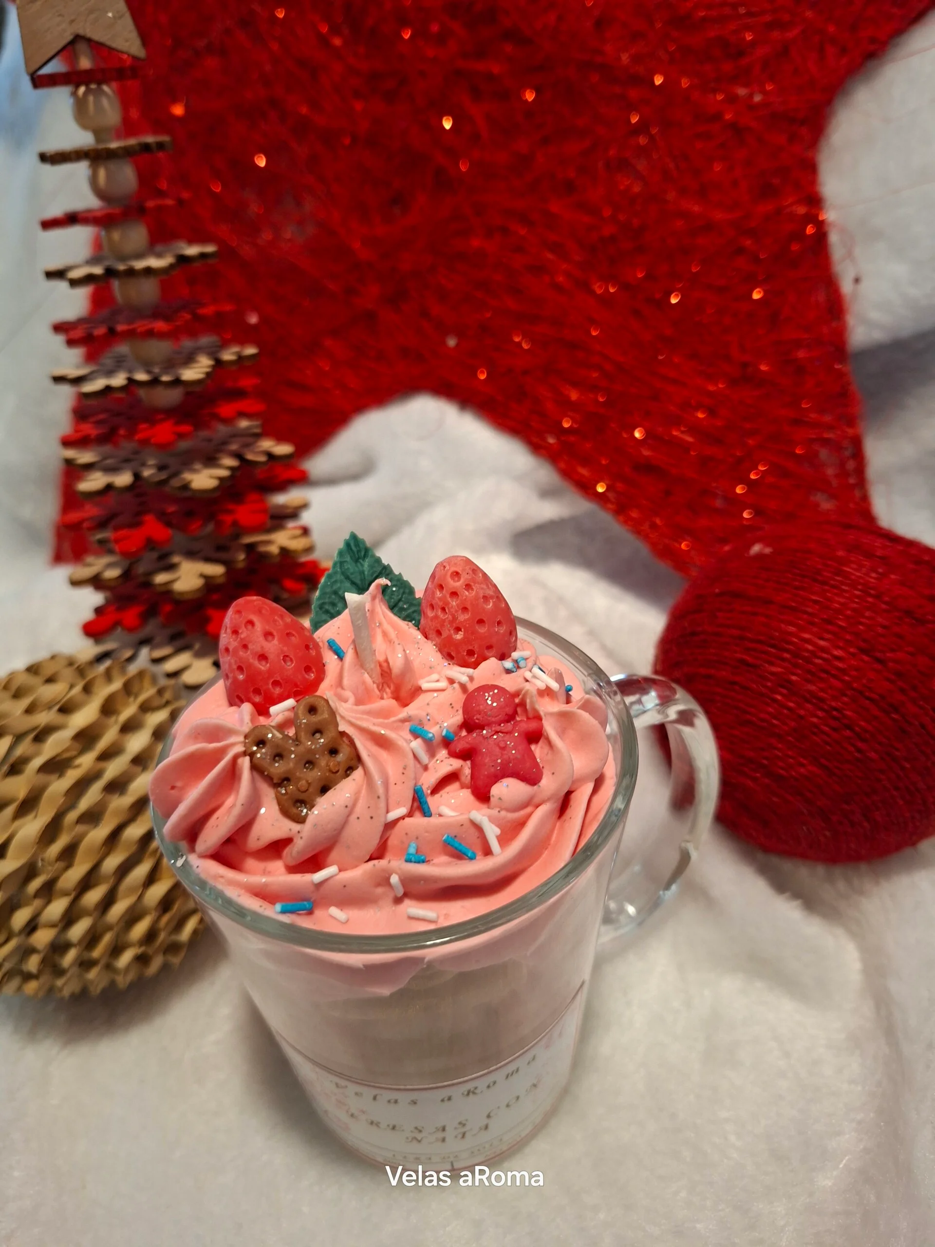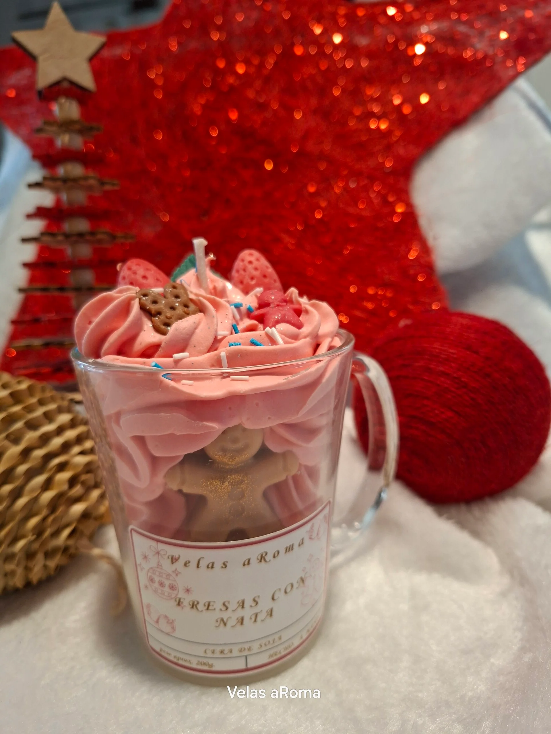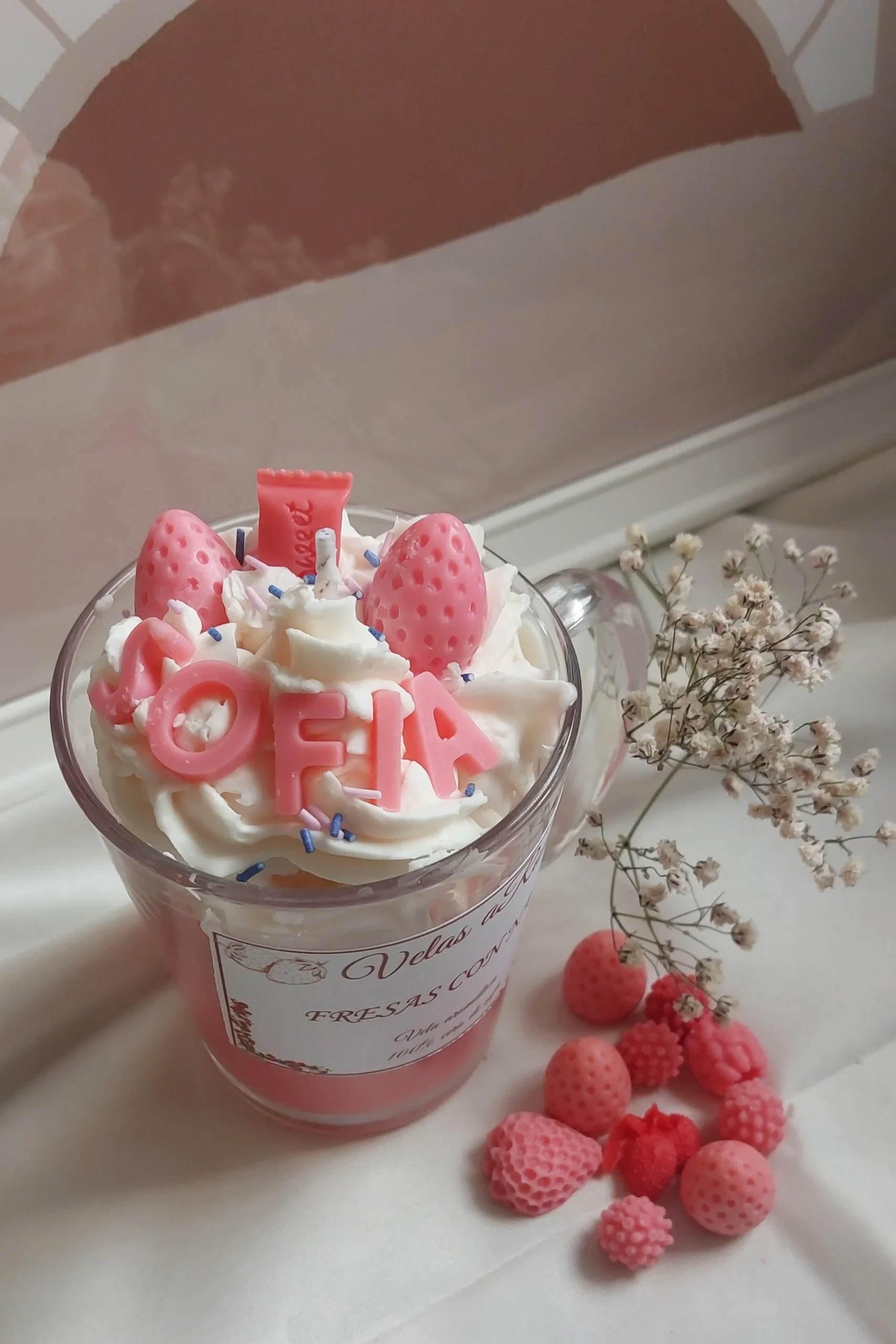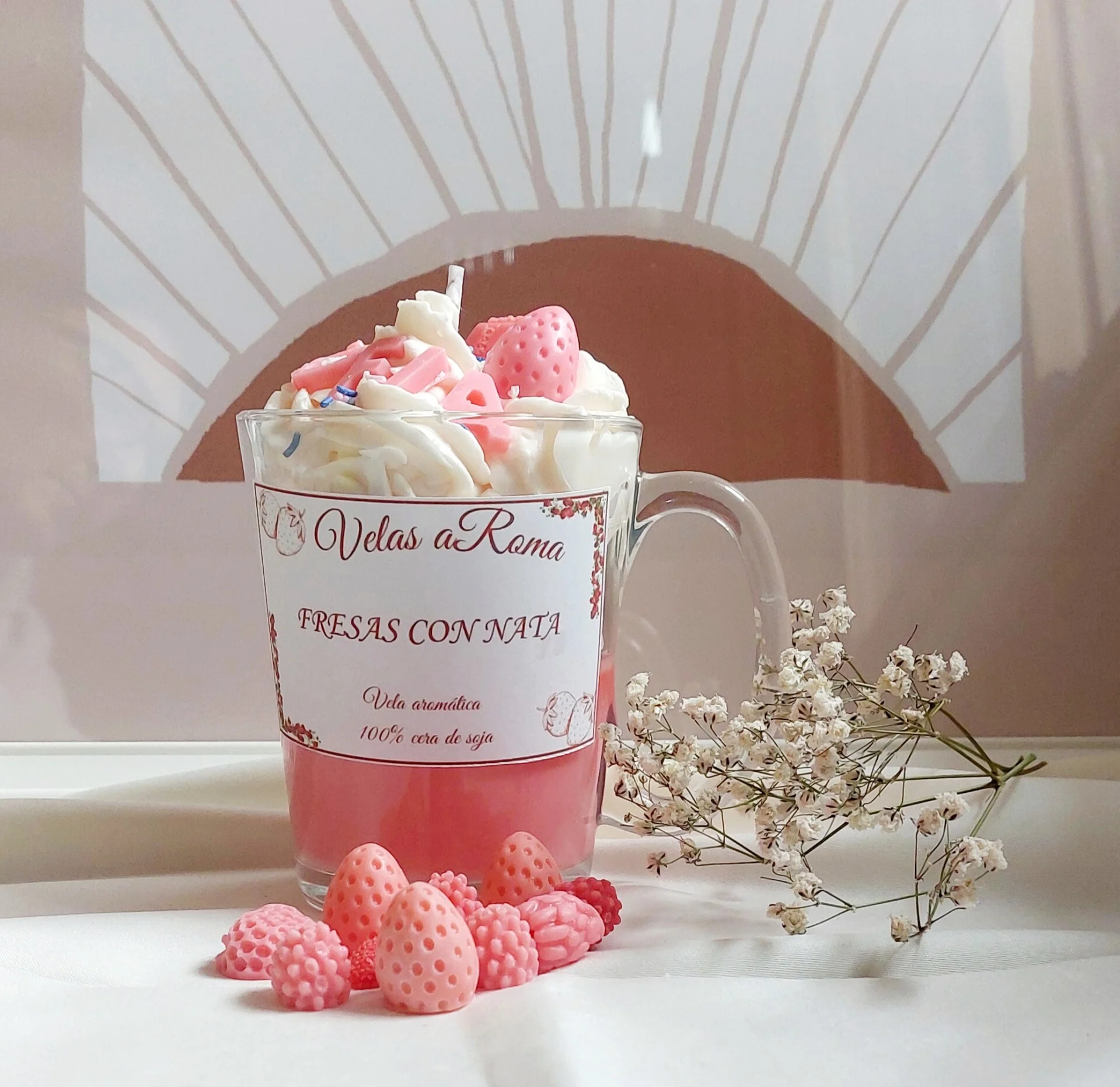 Vela Gourmet Fresas con Nata, hecha a mano con cera de soja natural.